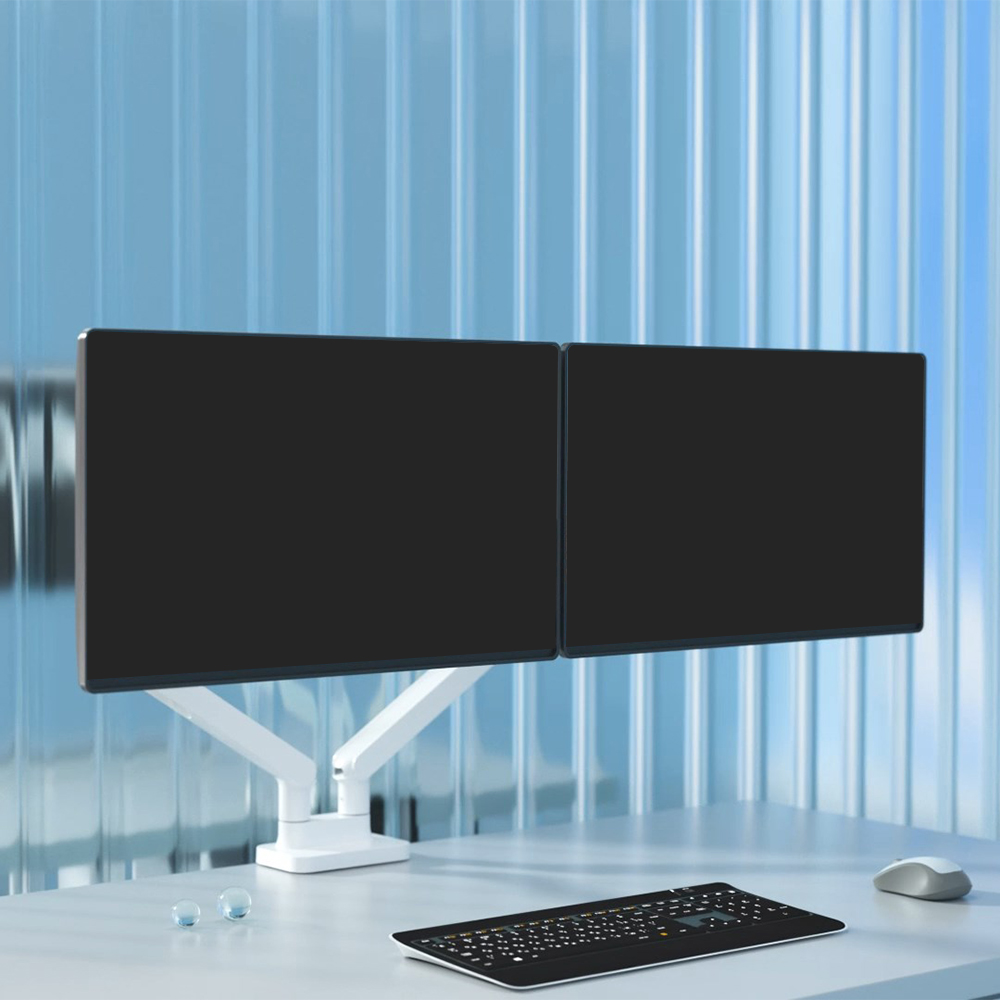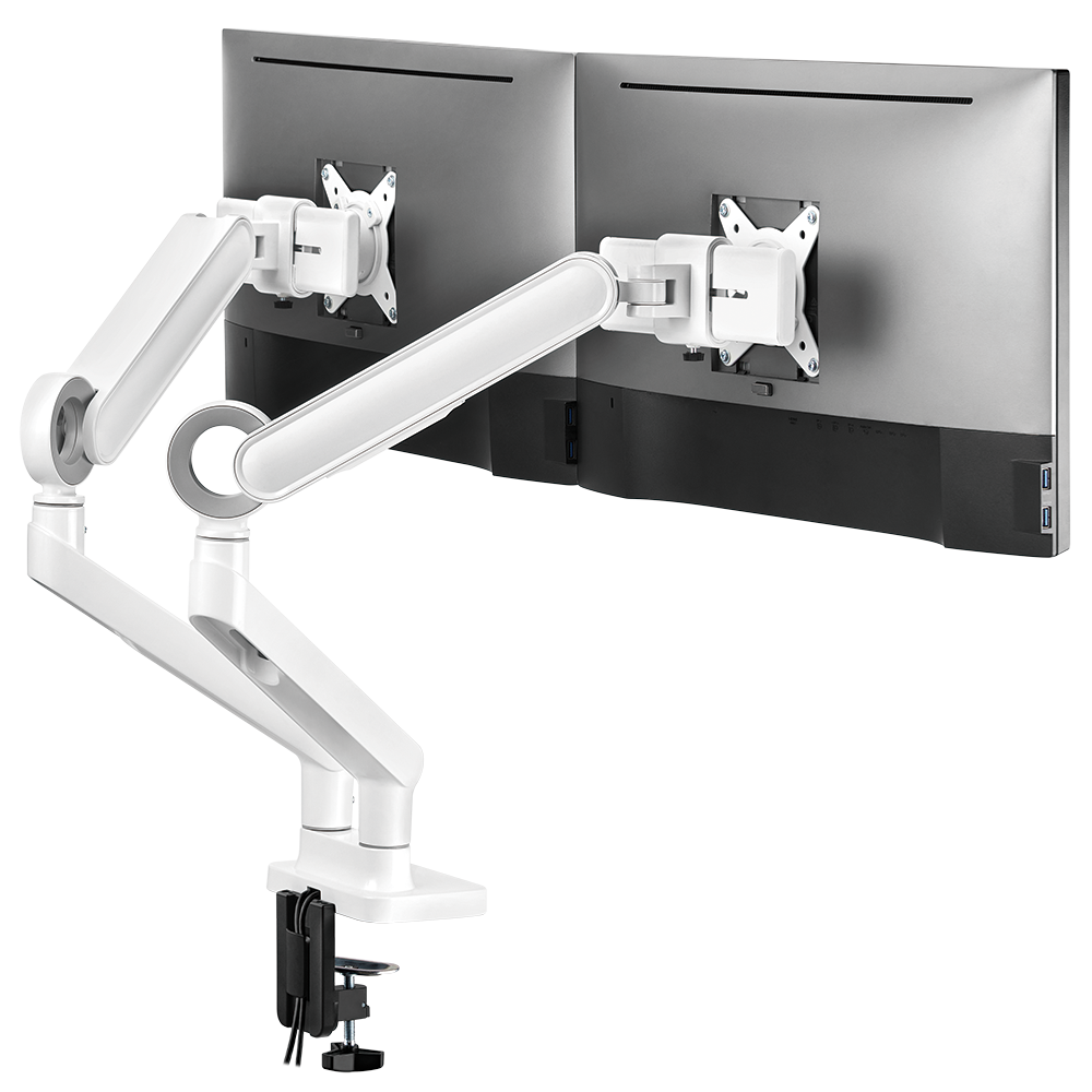 상품 무게5.74kg화면크기LED 15"~32" 적용 (VESA 75x75/100x100일때가능)VESA규격75x75,100x100mm제품색상화이트제품높이215~480mm(VESA중앙까지/클램프제외)ARM사이간격775~1385mm수용무게각 1~10kg책상지원두께클램프 10~55mm / 홀타입 10~40mm